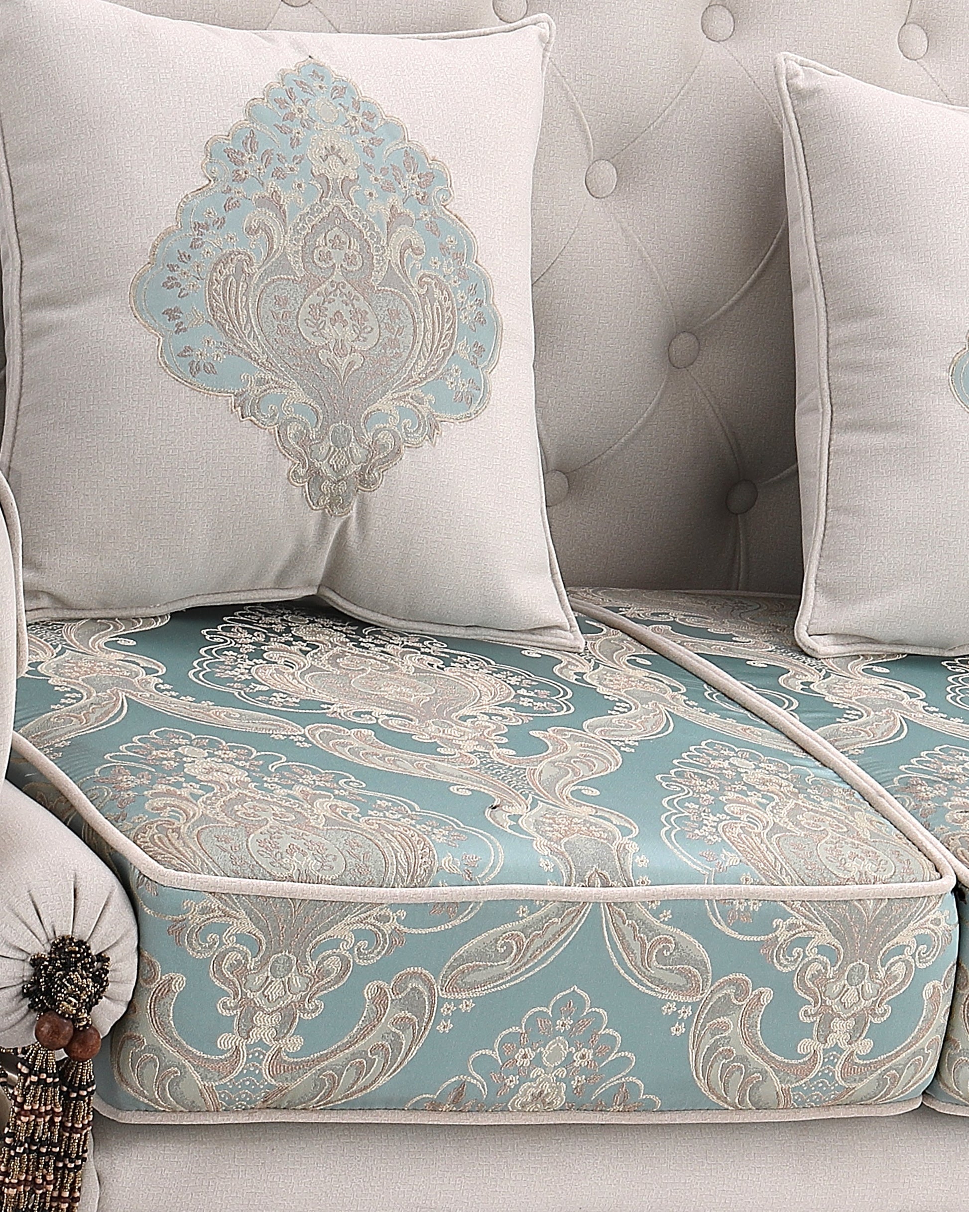 Featuring deep-cushioned comfort and ornate tassel accents, this sofa is not just furniture β itβs a legacy. Whether placed in a formal drawing room or a vintage-themed lounge, BADSHAH is designed to impress.