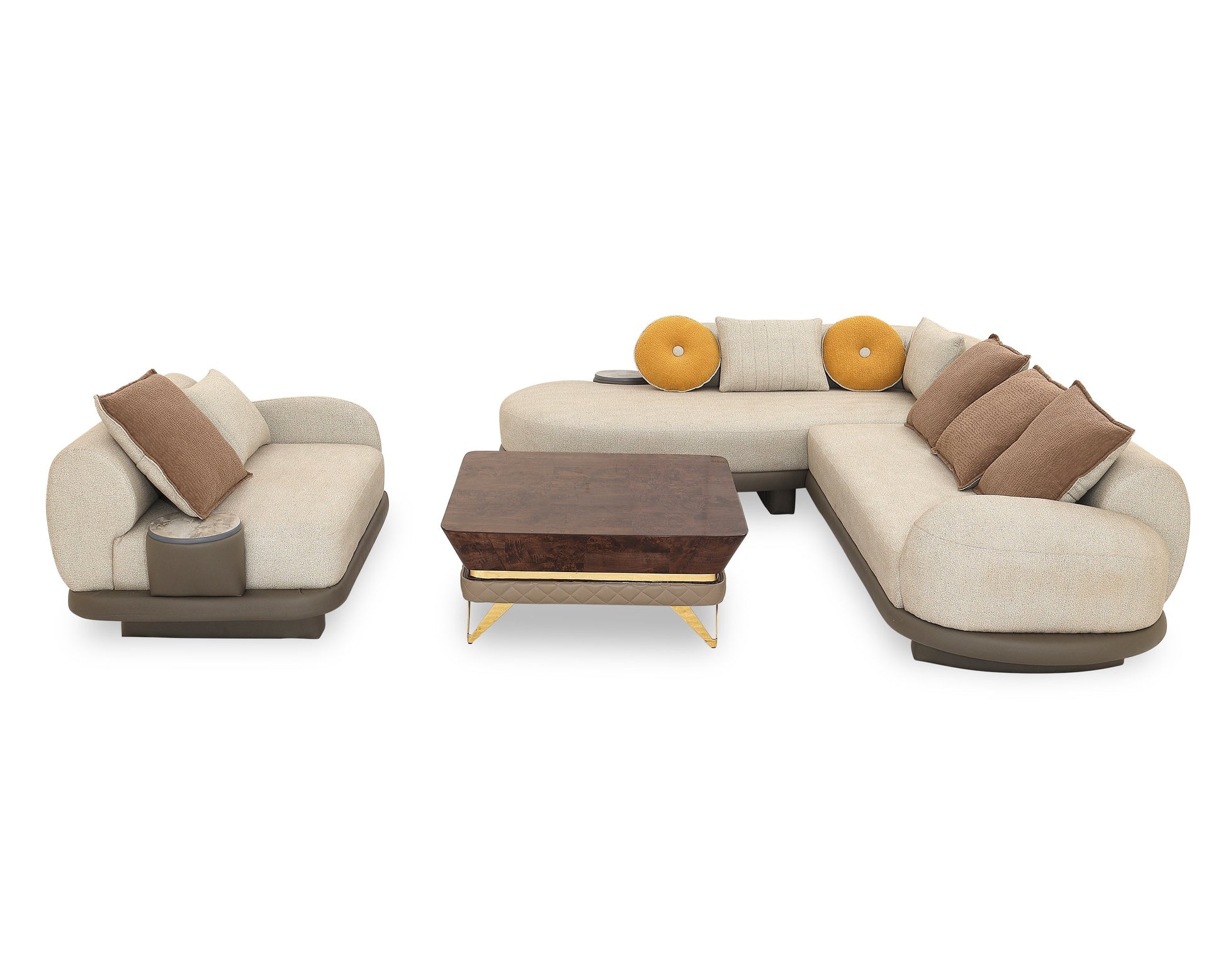 The FAMEASE Sofa Set is a masterstroke in modern comfort, bringing together minimal aesthetics and modular utility. Designed with rounded edges, a warm neutral fabric, and a unique combination of attached tables and cushioned versatility, it offers an inviting space for both style and relaxation. The L-shaped layout and deep seats make it perfect for lounging, entertaining, or unwinding in comfort.