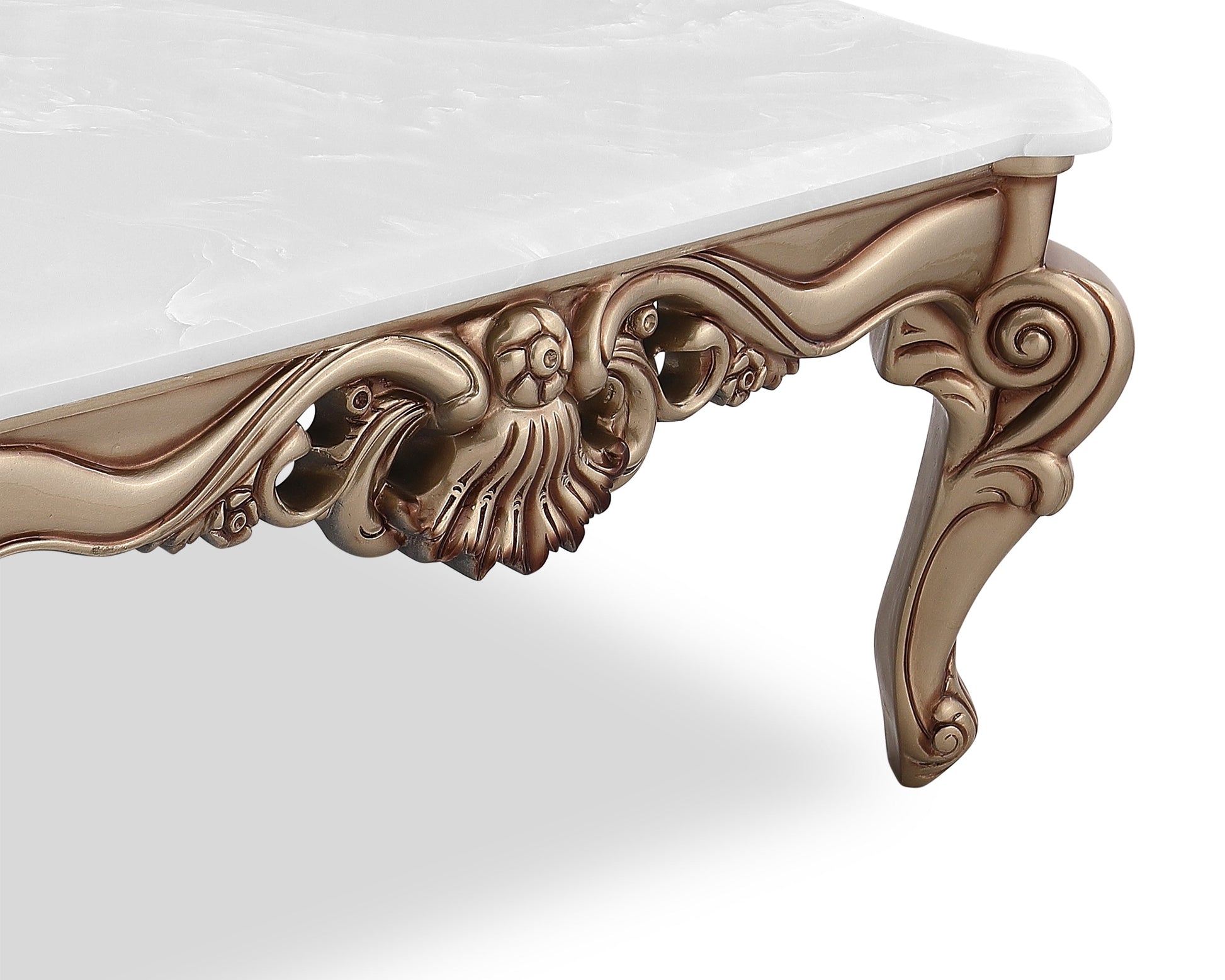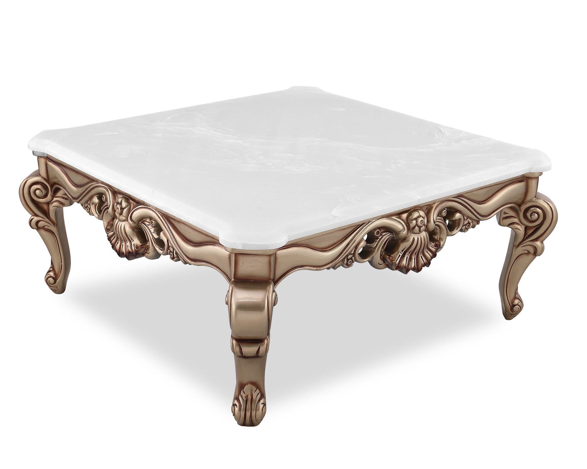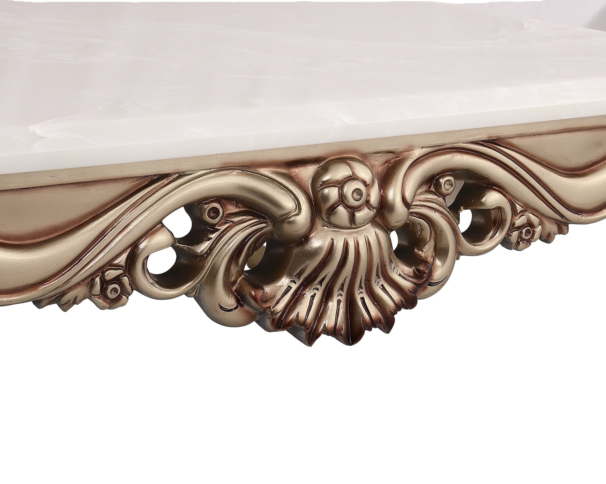 The SAMRAT Center Table captures the essence of regal Indian artistry in a refined, square format. Its luxurious white marble top is gracefully supported by a richly carved wooden base, finished in antique gold. With its sculpted motifs, scrollwork edges, and commanding form, this piece transforms any living room into a space of royal grandeur.