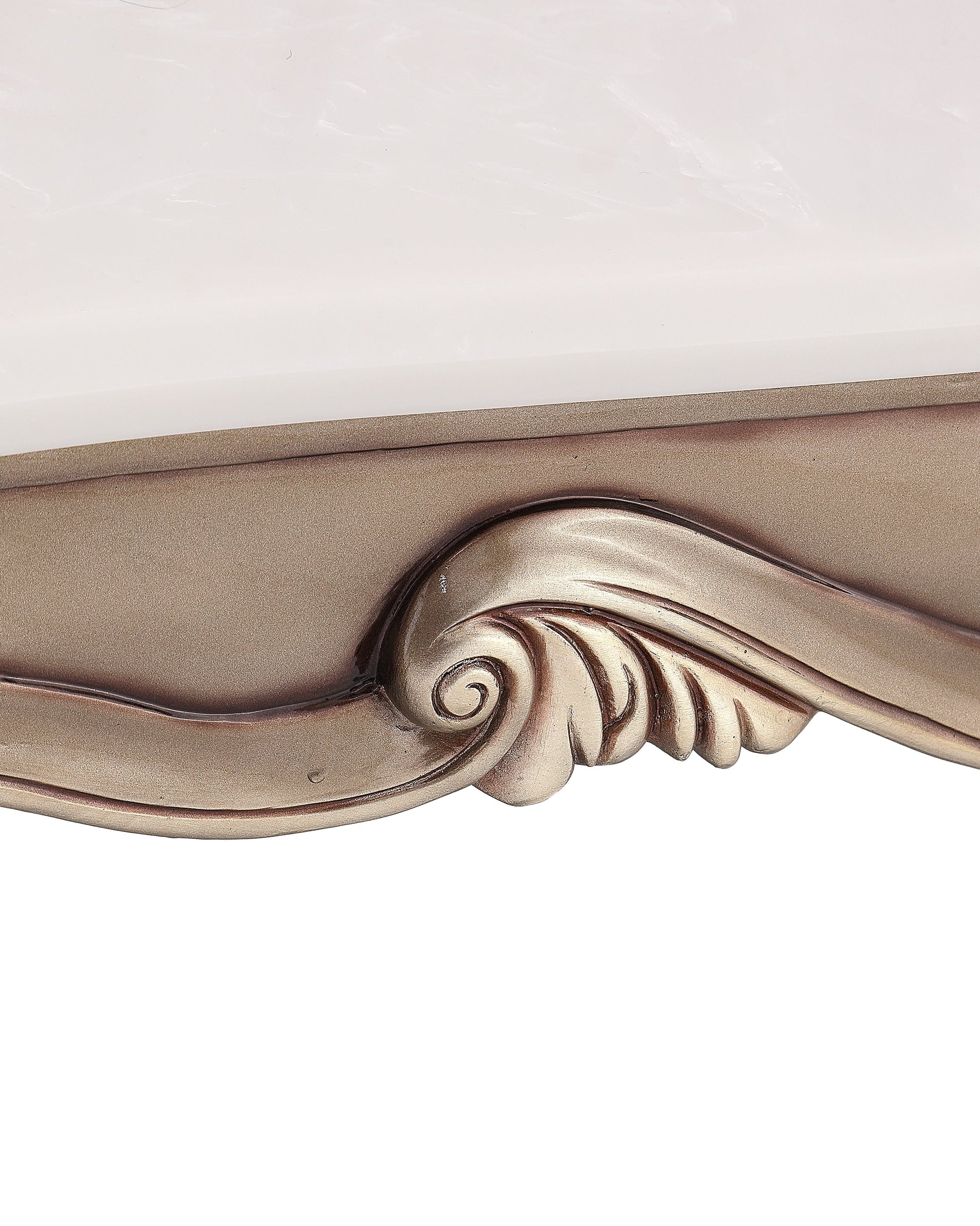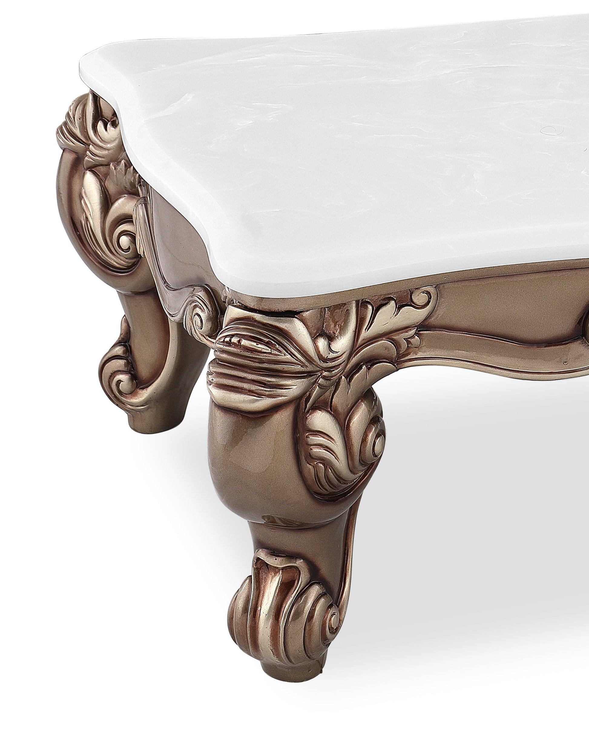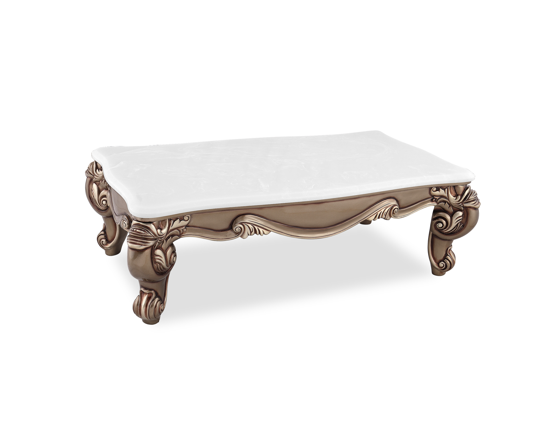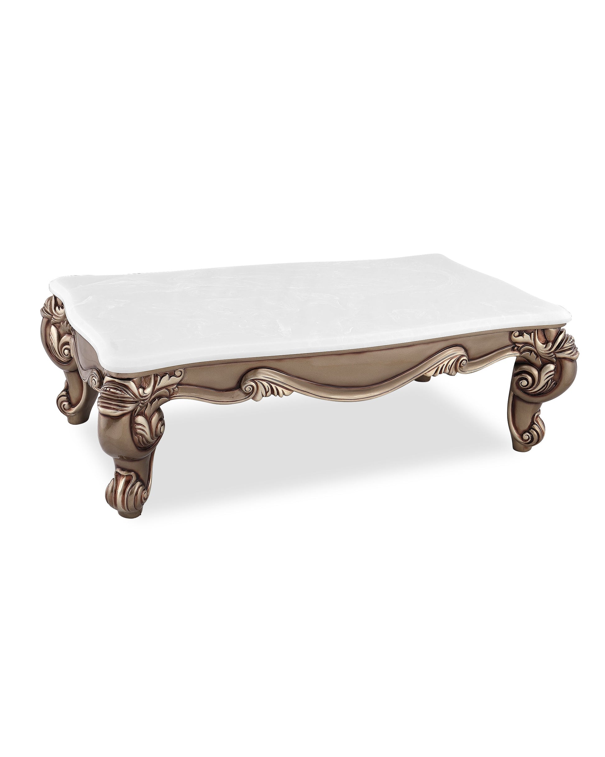 The SHIRAZ Center Table is an elegant fusion of royal design and timeless utility. Its premium white marble top rests on an intricately sculpted antique gold base, showcasing artistic scrollwork and soft floral curves. With its balanced proportions and vintage appeal, this piece anchors your living room with both function and beauty.